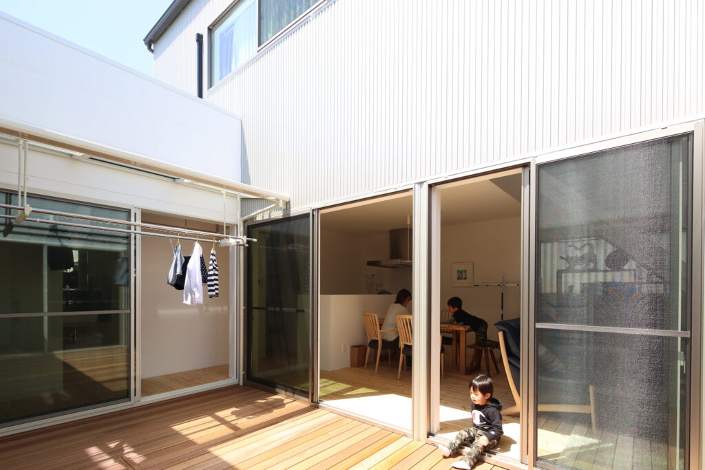 晴れた日は外で遊びたい。でも道路沿いだと車の事故が心配。そんな心配を吹き飛ばす安全性と防犯性の高い中庭。